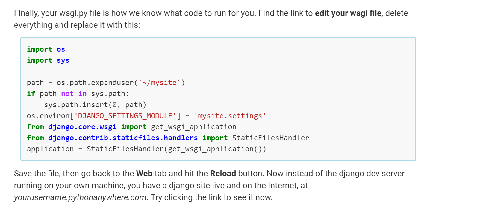 Following the official Django Tutorial on PythonAnywhere